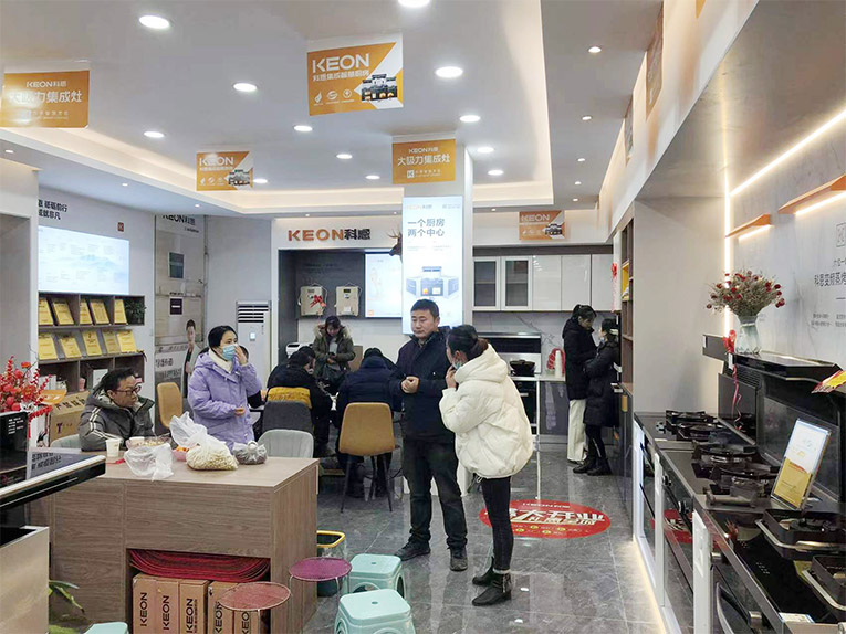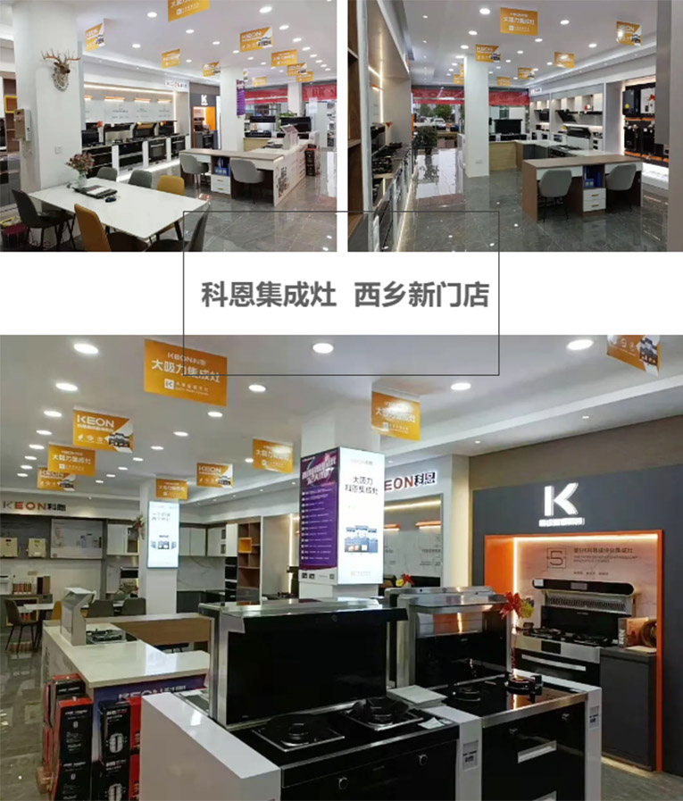 科恩西鄉(xiāng)專(zhuān)賣(mài)店融入了科恩全新新門(mén)店形象,優(yōu)雅的環(huán)境、火爆的氛圍、精心準(zhǔn)備的禮品,無(wú)一不彰顯著科恩集成灶的強(qiáng)大品牌實(shí)力。