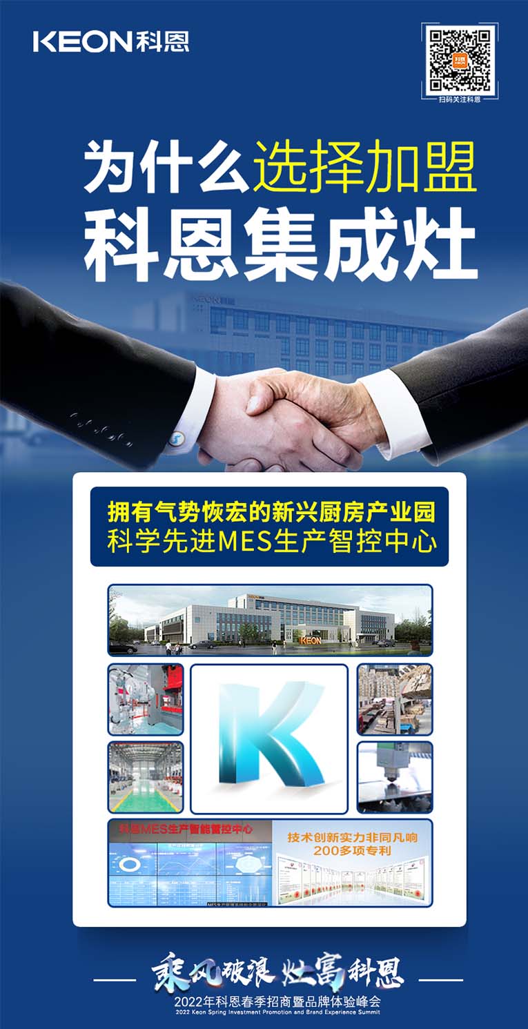 “乘風破浪,灶富科恩”2022科恩春季招商暨品牌體驗峰會將于3月18日舉行,選擇大于努力,抓住時代機遇!集成灶十大品牌、廚電行業(yè)十大品牌科恩集成灶具備優(yōu)于業(yè)界的技術、高質量的保證、強大的企業(yè)實力、有保障的售后等優(yōu)勢,實力加盟的不錯之選。