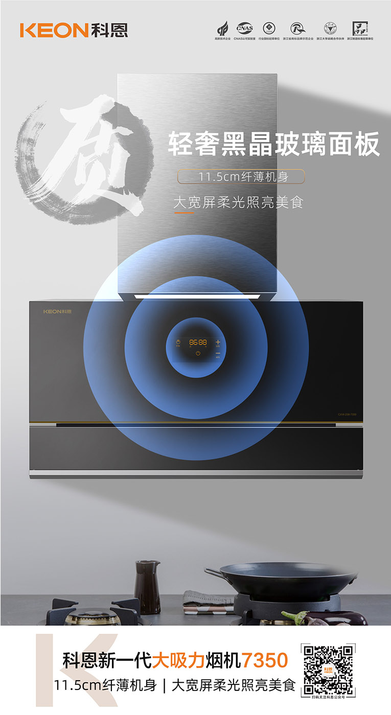 集成灶十大品牌、廚電行業(yè)十大品牌科恩新一代大吸力煙機7350即將上市,今天就跟隨小編一起,解鎖7350煙機獨特魅力。