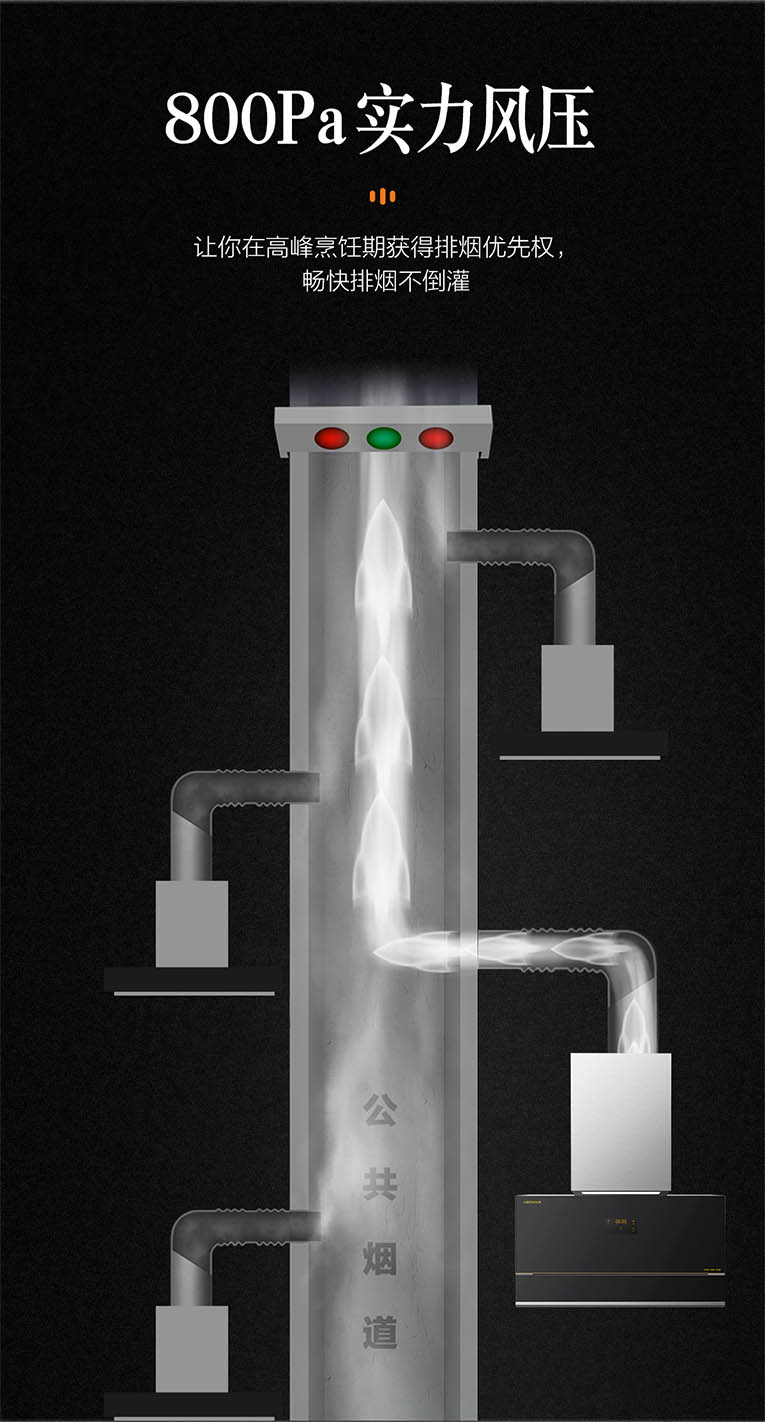 集成灶十大品牌、廚電行業(yè)十大品牌科恩新一代7350變頻大吸力煙機,變頻新科技,重新定義大吸力,能針對復(fù)雜的烹飪環(huán)境、多變的公共煙道風(fēng)阻,19.5±10%大風(fēng)量,800Pa大風(fēng)壓,能夠快速突破風(fēng)壓極限,遇強則強,八檔風(fēng)速迅速調(diào)節(jié),達到最佳抽油煙機效果,而當(dāng)煙道內(nèi)壓力較小時,煙機則自動調(diào)節(jié)轉(zhuǎn)速風(fēng)壓,保持恒定大吸力,確保油煙不逃逸、不倒灌,能有效解決油煙跑煙問題。