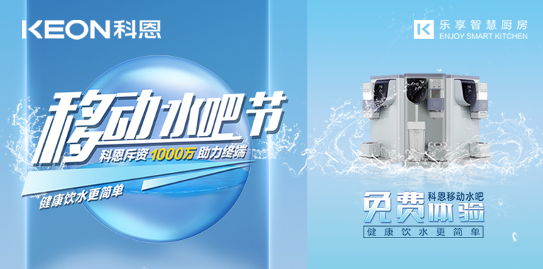 移動水吧的加持下,使得“科恩新三件”的產(chǎn)品戰(zhàn)略完美開展,廚房新國潮,科恩新三件~集成灶/集成水槽/集成式凈水器,延續(xù)“樂享智慧廚房”理念,打造更有趣、更便捷、更健康的廚房體驗(yàn),為用戶搭建真正的集成智慧廚房!贏在終端,贏在執(zhí)行力,當(dāng)下,科恩移動水吧節(jié)正在火熱進(jìn)行中,邀請用戶進(jìn)科恩全國門店,即可享受免費(fèi)體驗(yàn)新款移動水吧活動,精準(zhǔn)種草,助力門店業(yè)績倍增!