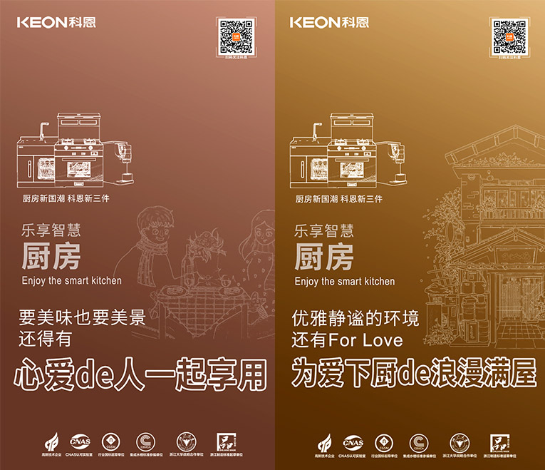 國潮正當(dāng)時,隨著國貨的崛起,消費者更加開始關(guān)注高端新國貨!科恩集成灶為千萬家庭打造樂享智慧廚房空間,創(chuàng)新設(shè)計、高端品質(zhì)、優(yōu)良服務(wù)、優(yōu)質(zhì)體驗贏得了用戶的高度認(rèn)可。順應(yīng)“國潮”趨勢,提煉“新國貨新潮牌”理念,結(jié)合“廚房新國潮,科恩新三件”,以滿足現(xiàn)代年輕群體對國貨的審美與品質(zhì)認(rèn)知,以匠心科技實現(xiàn)現(xiàn)代廚房功能需求。