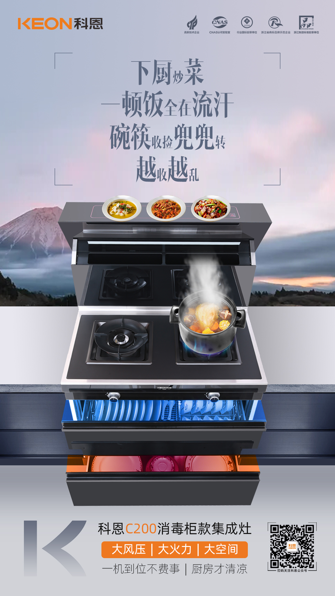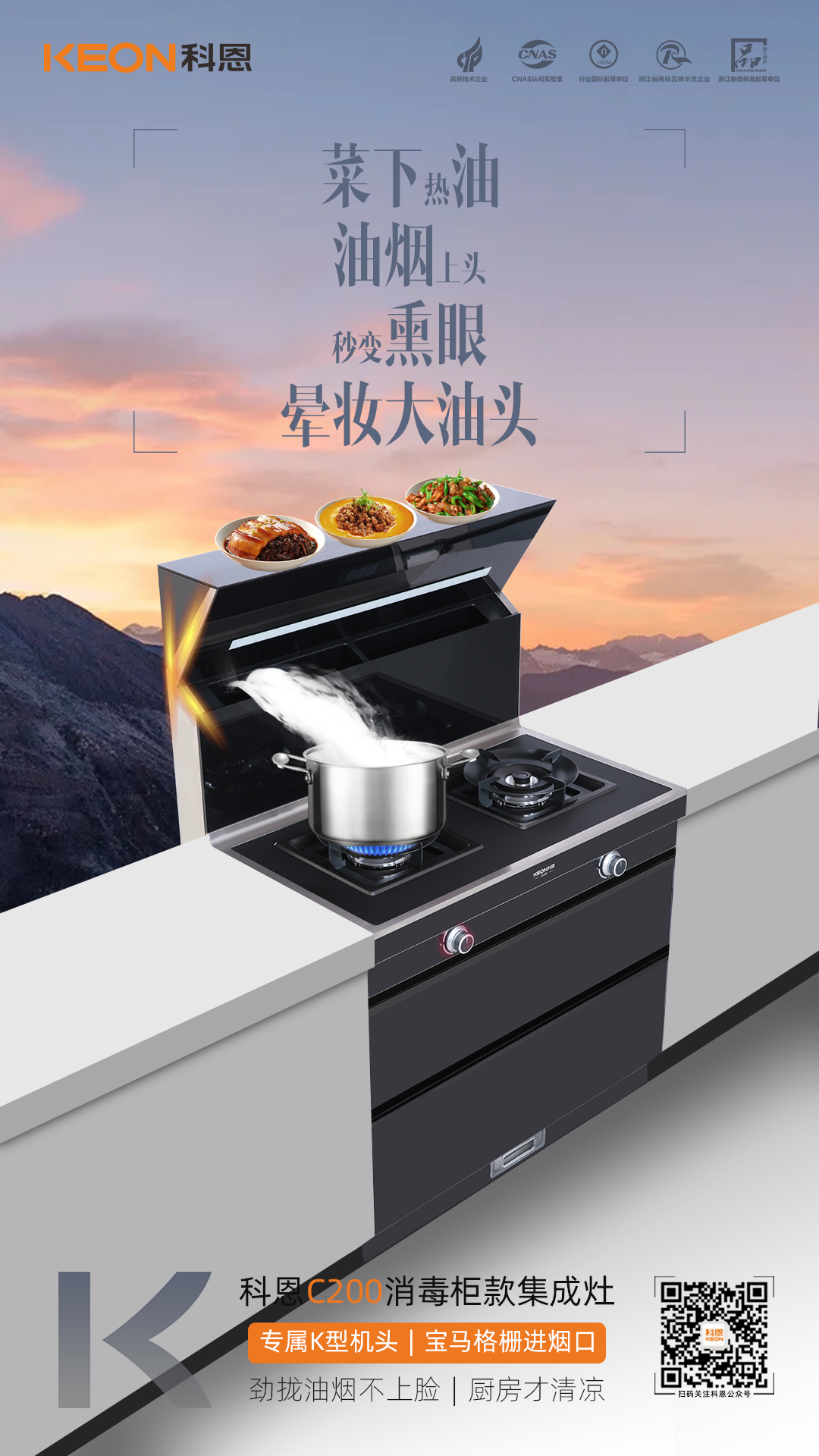 科恩C200消毒柜款集成灶,夏日廚房必備寶藏好物,實(shí)用不踩雷,分分鐘讓你愛上下廚!