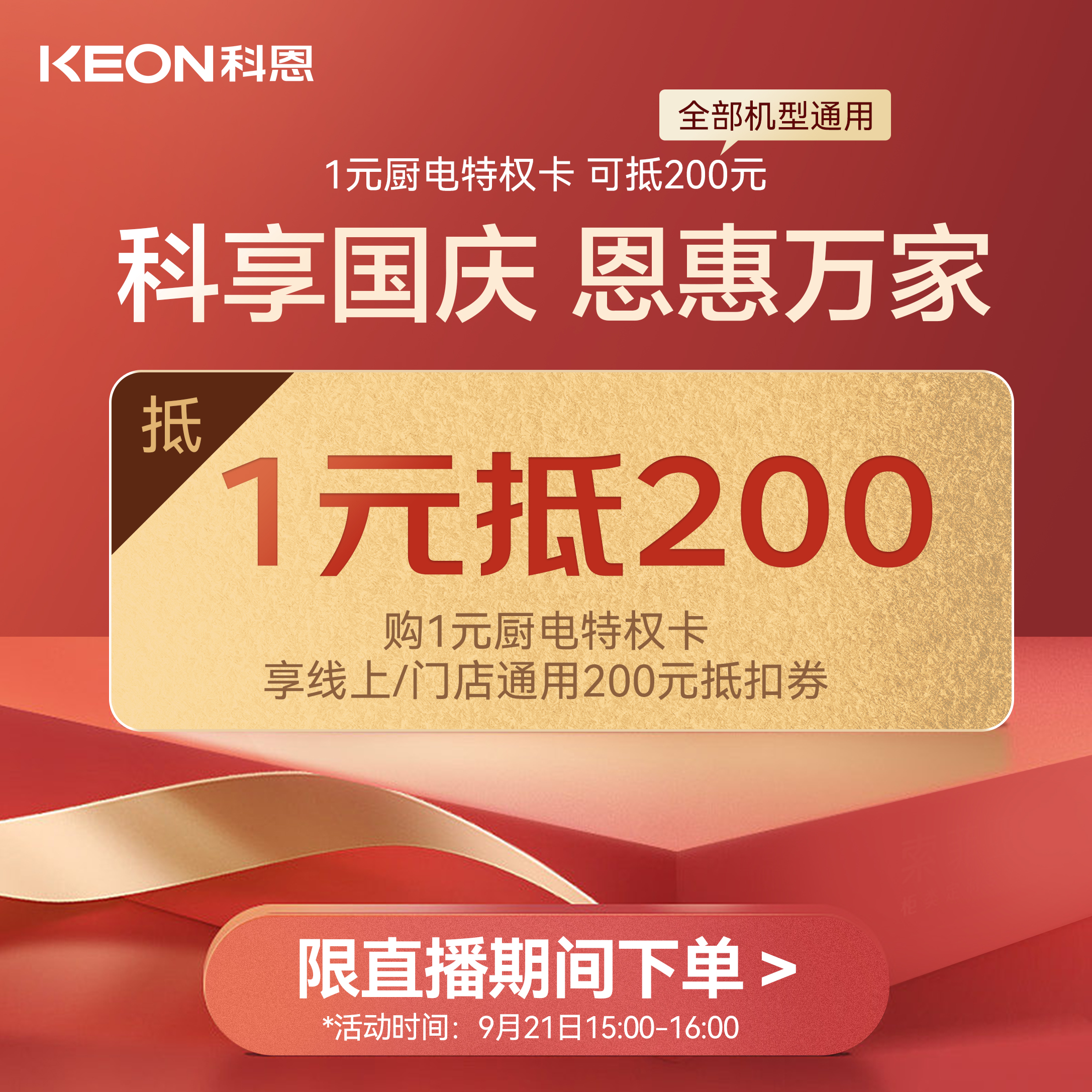 購1元廚電特權(quán)卡,享線上/門店通用200元抵扣券