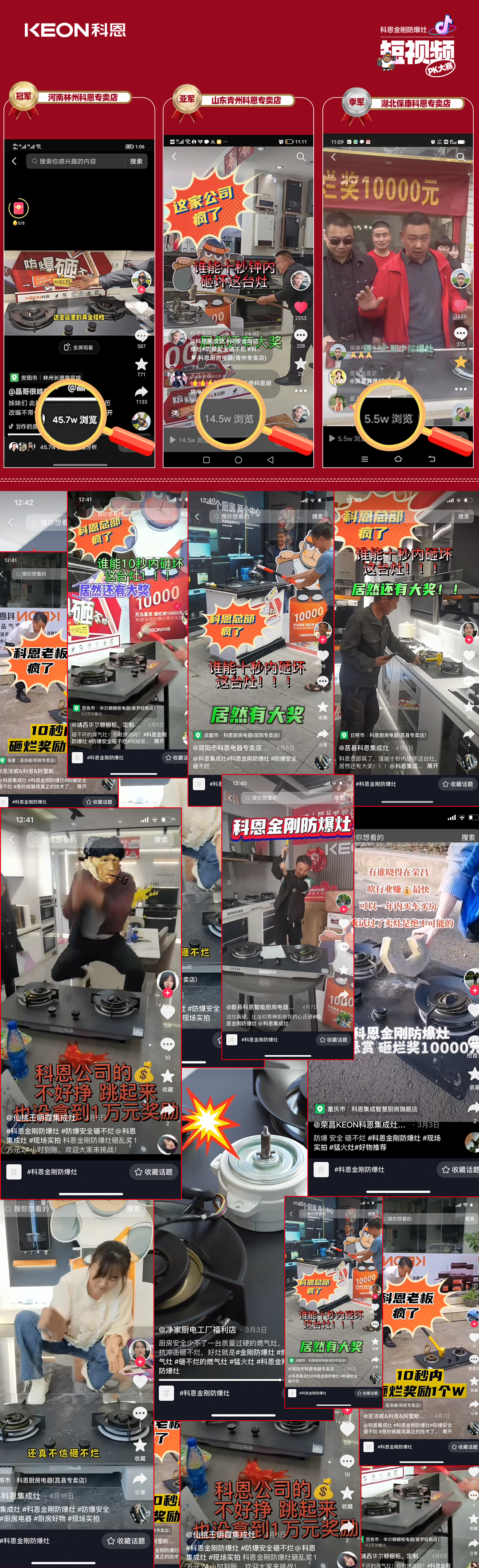 歷時(shí)一個(gè)月的科恩金剛防爆灶抖音挑戰(zhàn)賽終于落下帷幕!比賽評(píng)審工作也已結(jié)束,經(jīng)銷(xiāo)商家人們都取得了不錯(cuò)的成績(jī)。