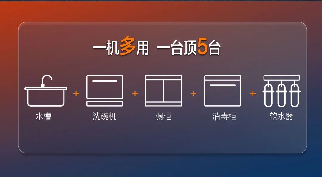 一臺集成水槽洗碗機,相當(dāng)于:水槽+洗碗機+櫥柜+消毒柜+軟水機!一平方實現(xiàn)解放清洗自由,解放雙手就是現(xiàn)在!