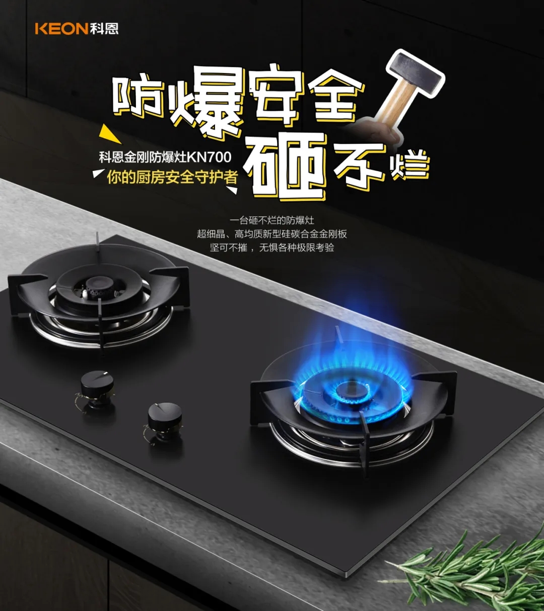 灶具則選擇了科恩KN700金剛防爆灶。近年來(lái)廚房事故頻發(fā),灶具炸裂不再少數(shù)。因此,科恩KN700金剛防爆灶在材質(zhì)上選擇了防爆金剛板,硅碳合金特種材質(zhì)可耐高溫1500℃,高于國(guó)標(biāo)3倍以上,更安全!在抗沖擊方面,防爆金剛板是能抗住工地大鐵錘的暴擊,真正做到0級(jí)防爆高硬度,更堅(jiān)固,更安全!如此有效杜絕了廚房安全事故。