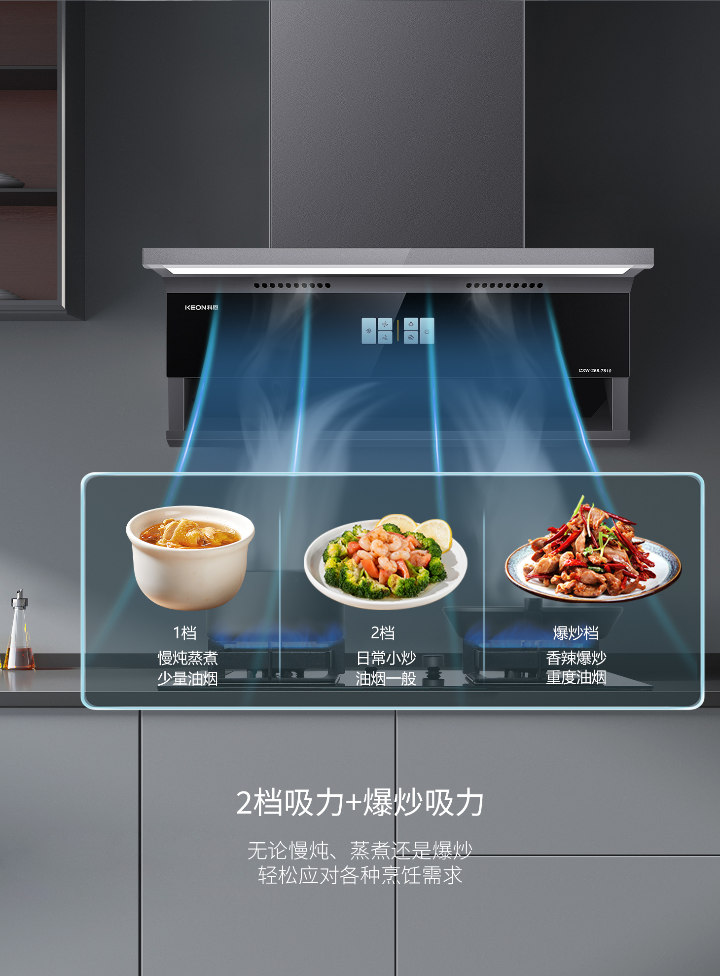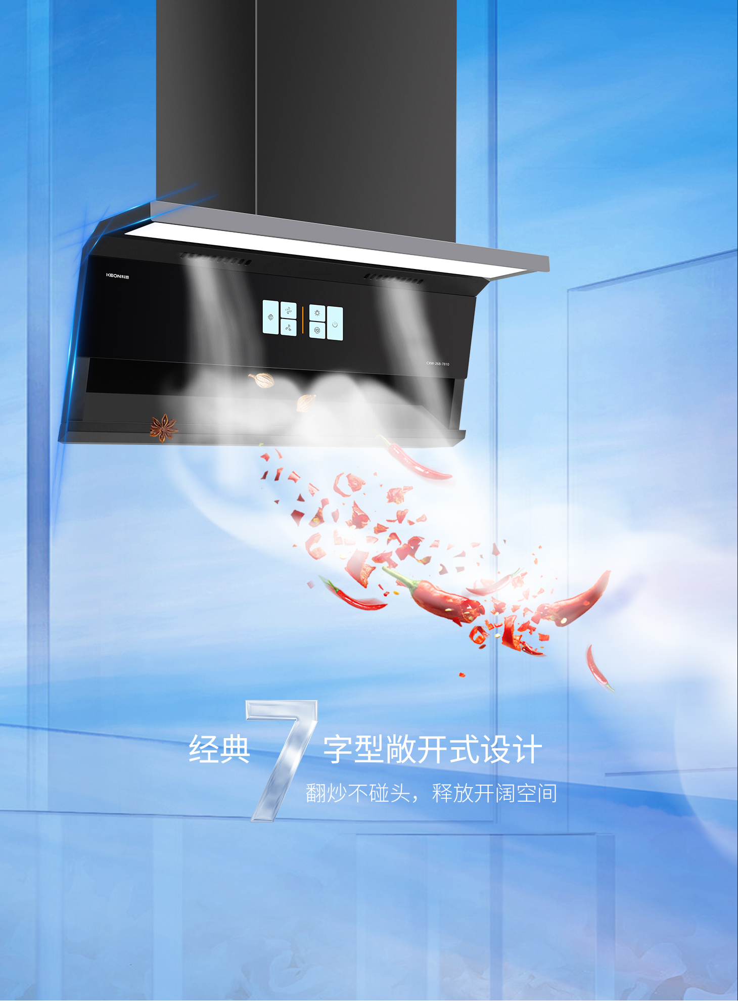 科恩旗艦款大吸力油煙機(jī)7810,兩檔吸力+爆炒模式,輕松下廚零負(fù)擔(dān)。智能自清洗去除頑固油污,延時(shí)凈煙自動(dòng)清除余味,守護(hù)廚房每一寸清新。攜手科恩,煥新生活??贫?810凈煙有魄力,廚房方寸皆自由。這個(gè)舊廚煥新季,換一臺(tái)會(huì)思考的煙機(jī),給廚房一次溫柔革命!