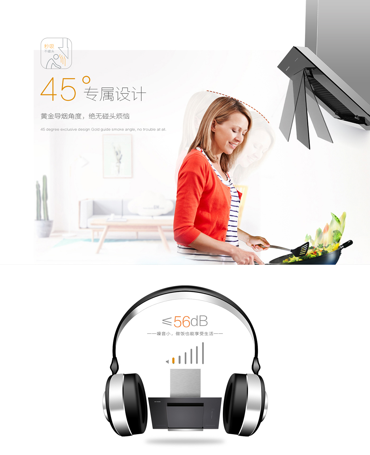 - 45°專屬設(shè)計,黃金導(dǎo)煙角度,無碰頭煩惱。