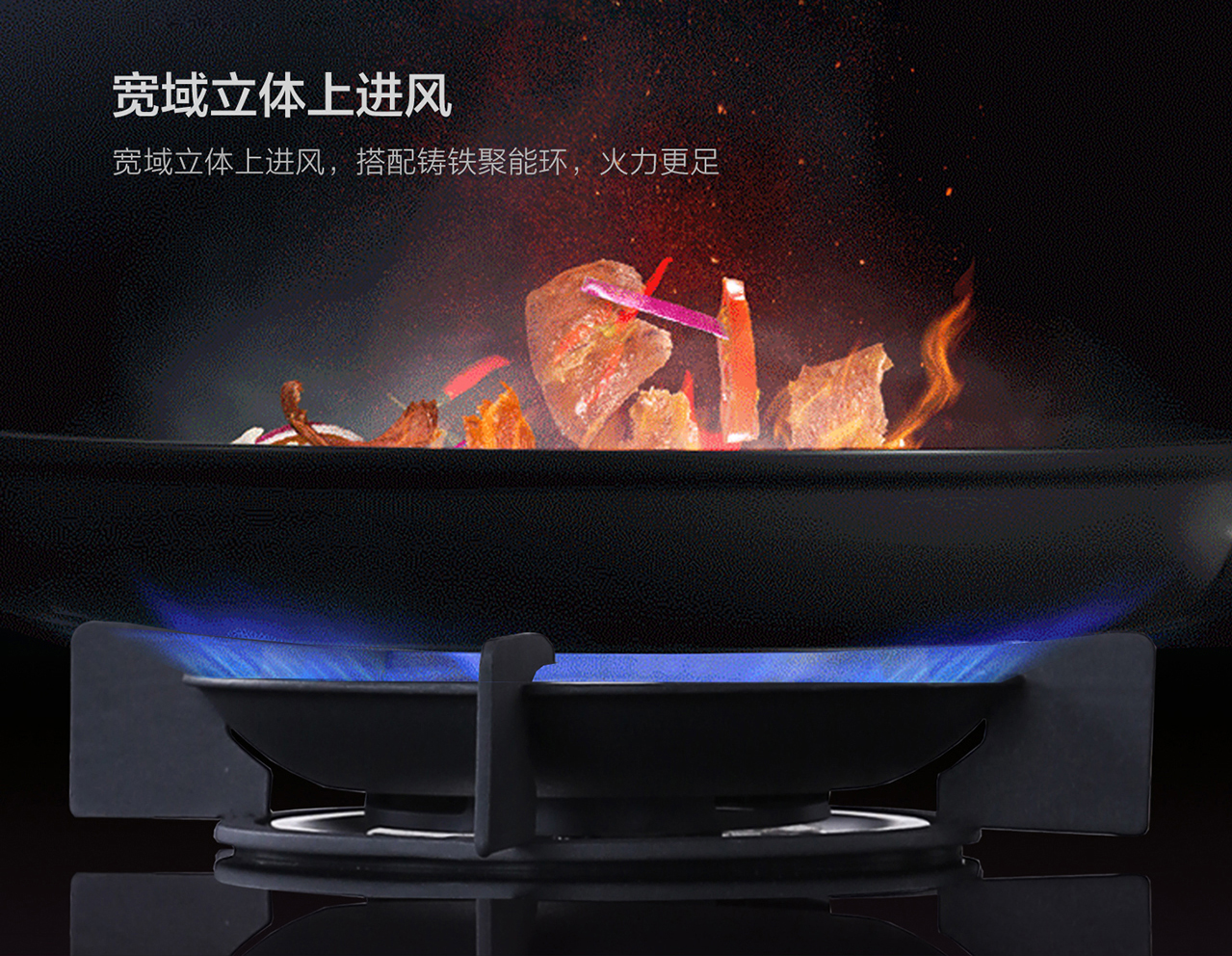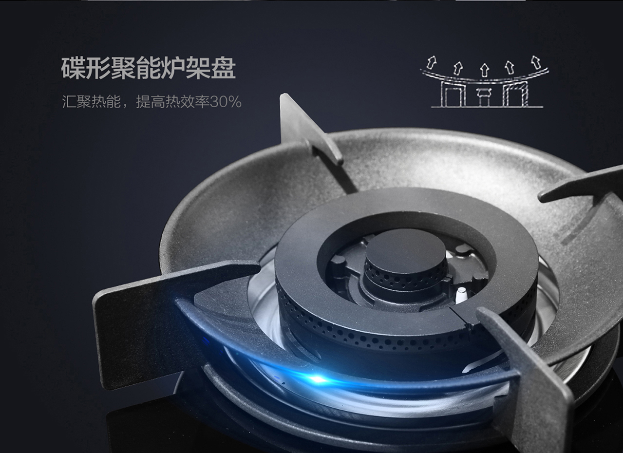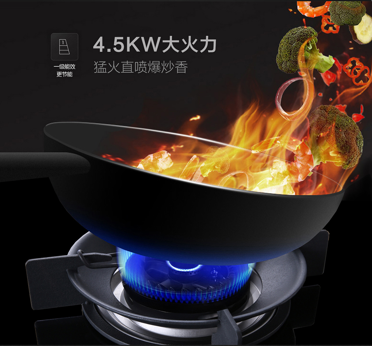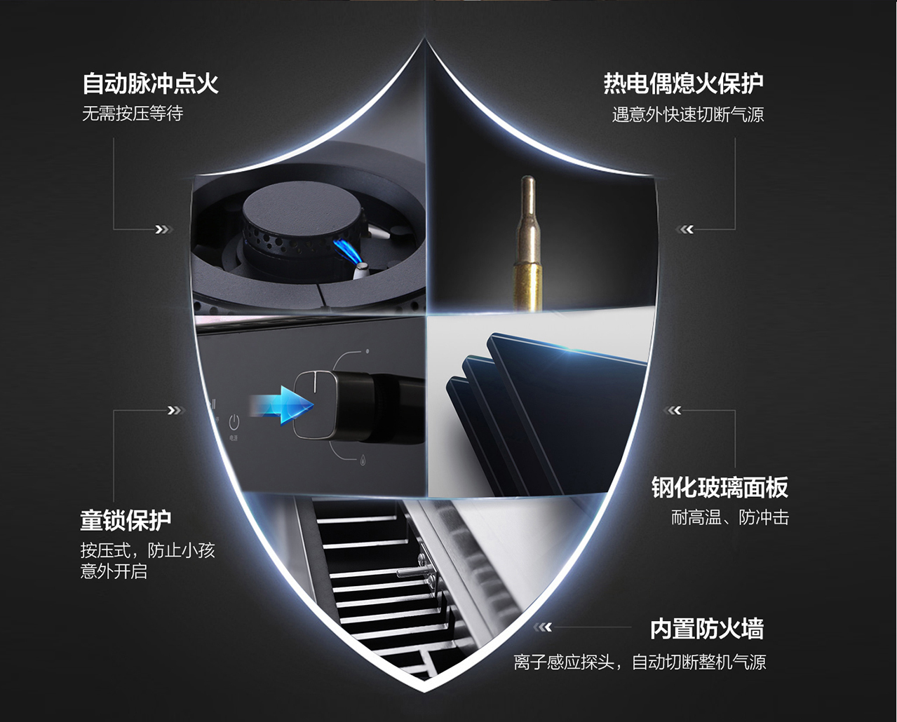 - 8MM加厚黑晶防爆鋼化玻璃灶臺面板,外觀時尚,易潔易打理。