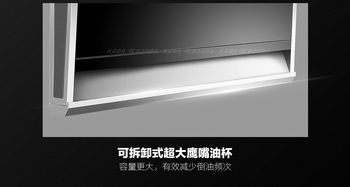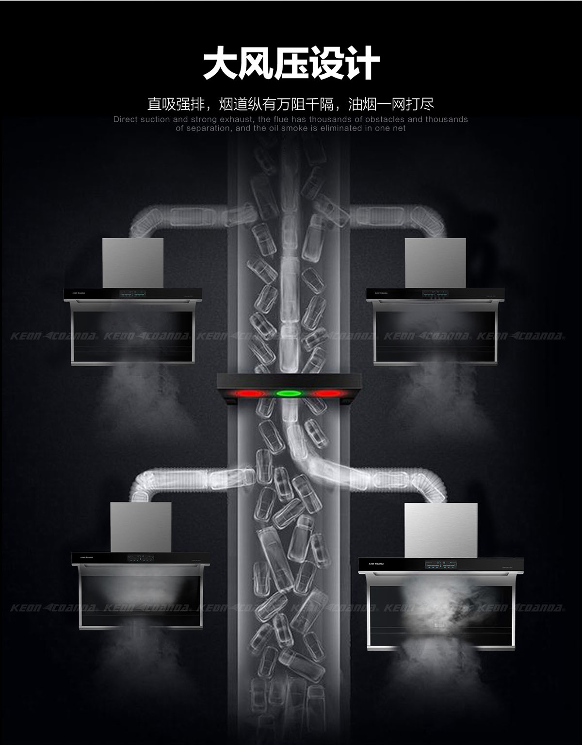 - 頂側(cè)兩吸,多方位爆吸油煙,四面八方不跑煙。