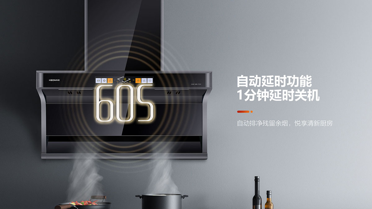 自動延時功能,1分鐘延時關(guān)機,自動排凈殘留余煙,悅享清新廚房