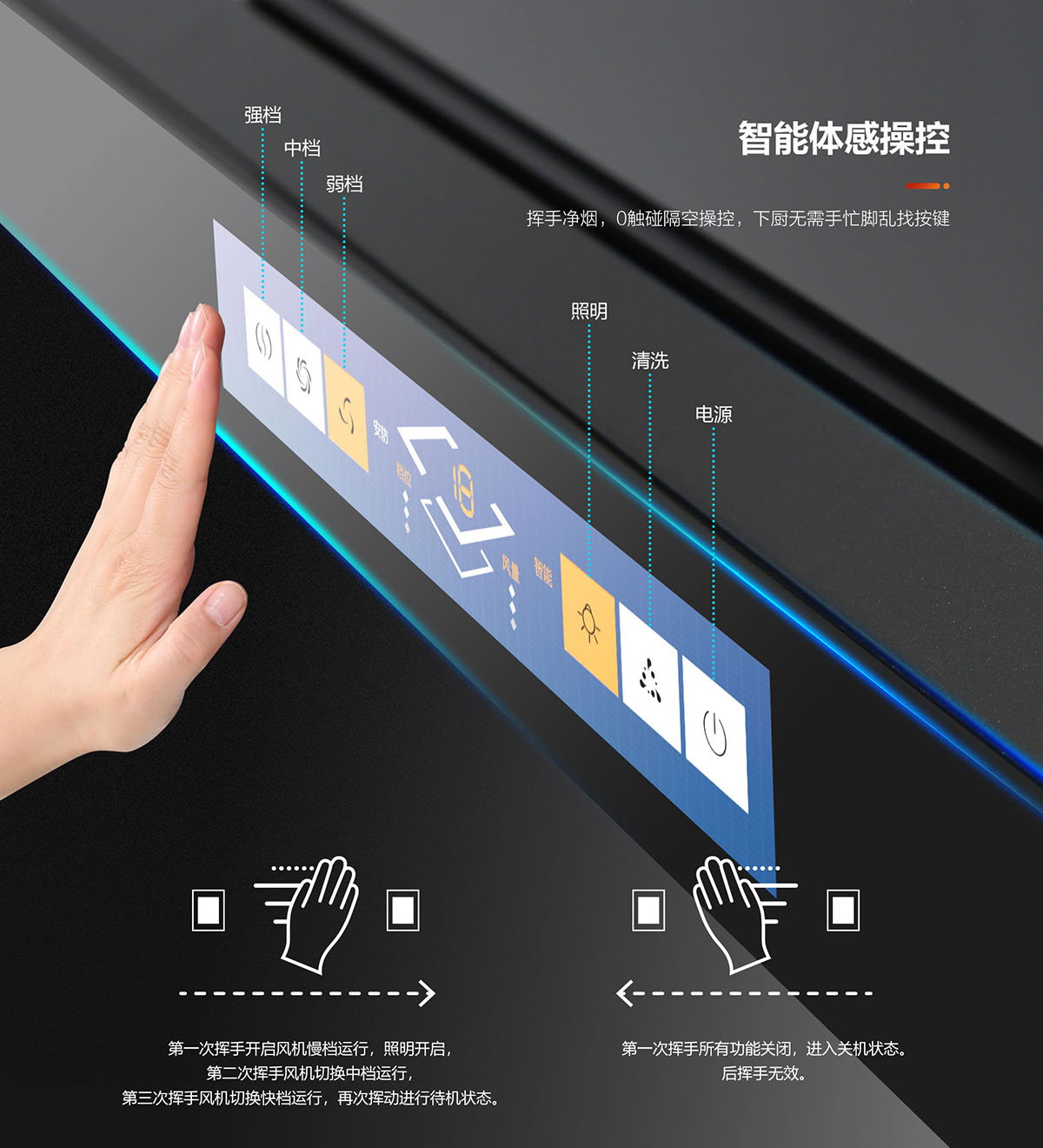 智能體感操控,揮手凈煙,0觸碰隔空操控,下廚無需手忙腳亂找按鍵