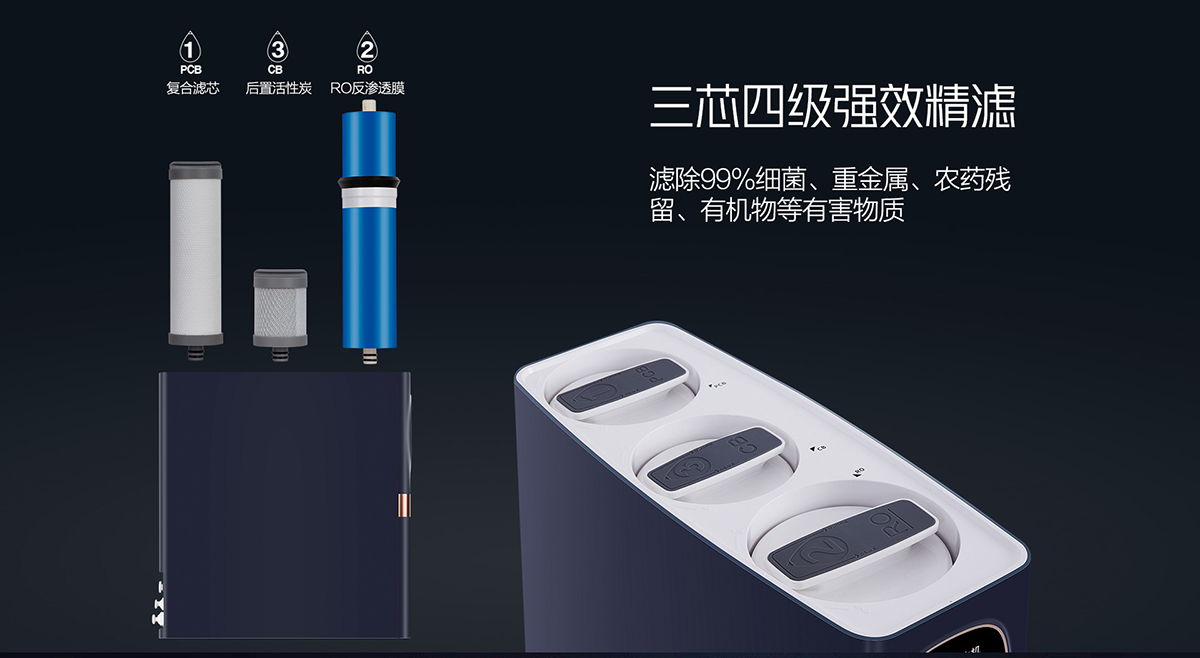 - 三芯四級強(qiáng)效精濾,濾除99%細(xì)菌重金屬