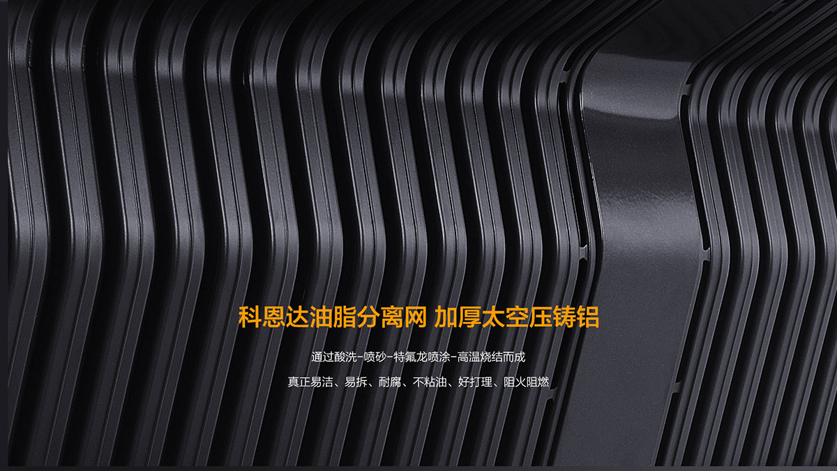 科恩達(dá)油脂分離網(wǎng),加厚太空壓鑄鋁材質(zhì),特氟龍易潔易洗易拆工藝