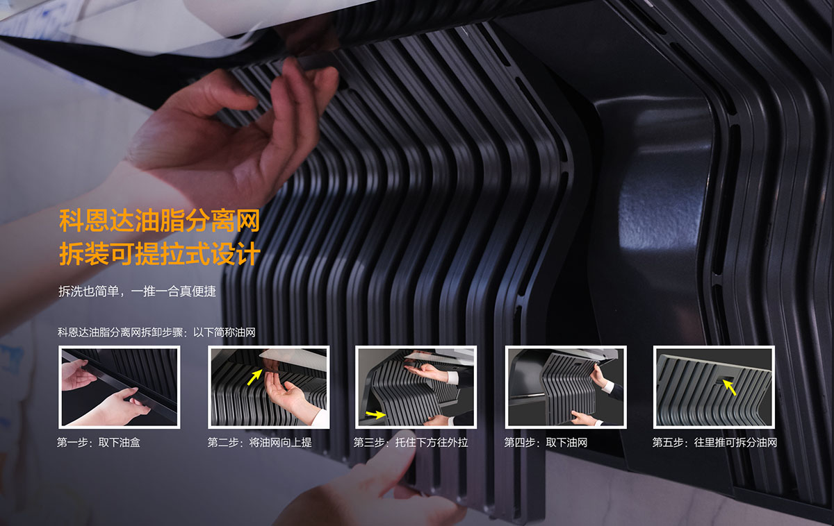 科恩達(dá)油脂分離網(wǎng)拆裝可提拉式設(shè)計(jì),拆洗也簡單,一推一合真便捷