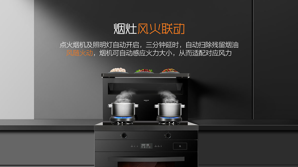 - 煙灶聯(lián)動(dòng),點(diǎn)火自動(dòng)同步開(kāi)啟油煙機(jī)