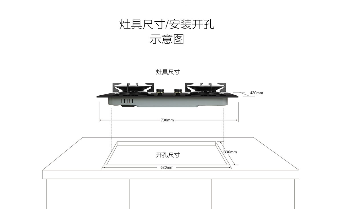外形尺寸:730x420x133mm開孔尺寸:620x330xR15mm