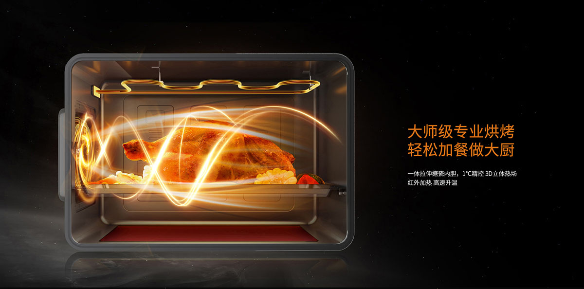 - 遠(yuǎn)紅外魔力烤:紅外加熱高速升溫,1°C精控,3D立體熱場(chǎng)