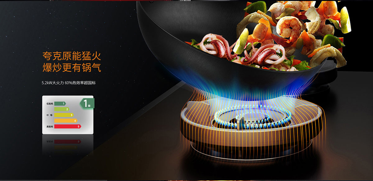 - 一級(jí)能效,5.2kW 大火力,全進(jìn)風(fēng)設(shè)計(jì),燃燒充分,爆炒給力
