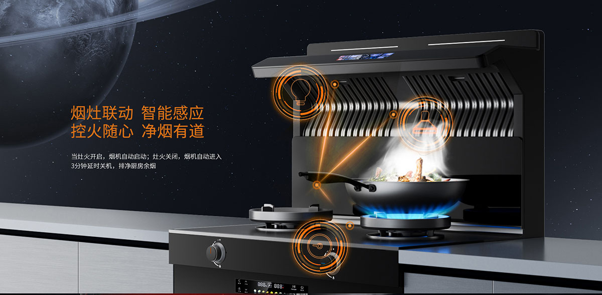 - 煙灶聯(lián)動(dòng),點(diǎn)火煙機(jī)及照明燈自動(dòng)開啟;三分鐘延時(shí),自動(dòng)掃除殘留煙油