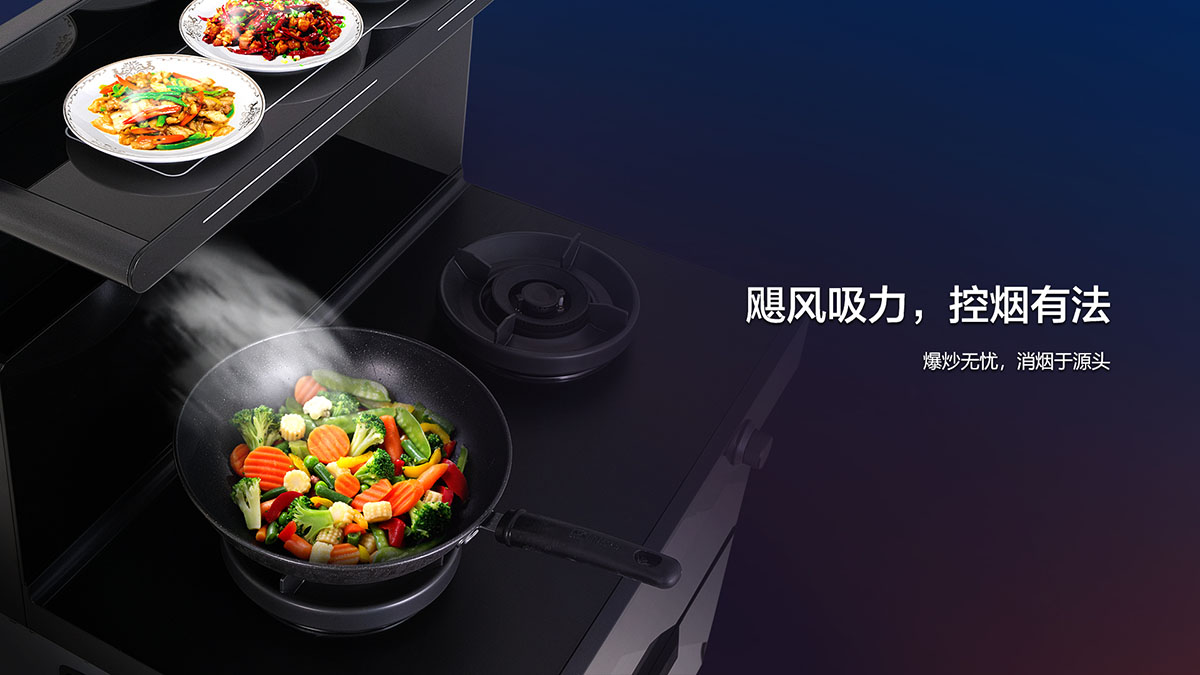 - 創(chuàng)新蘋果機(jī)頭,懸浮式隔煙設(shè)計(jì),油煙0擴(kuò)散