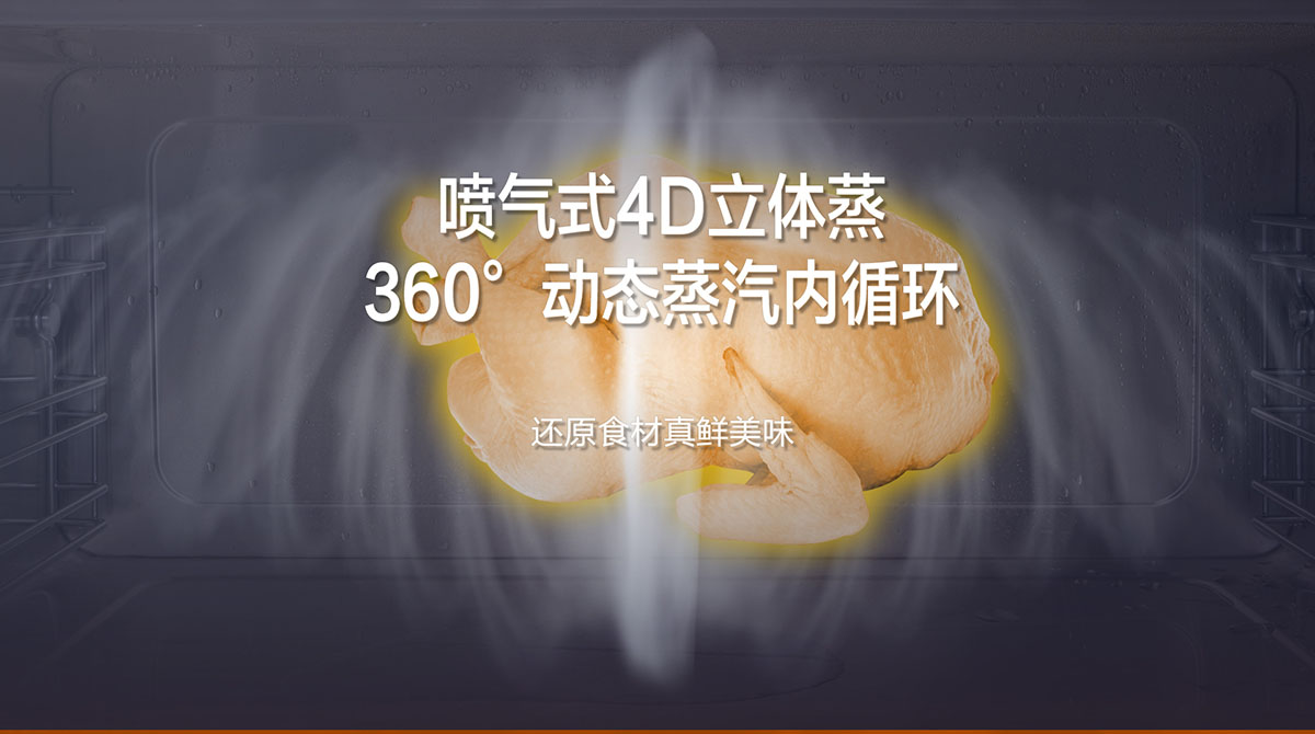 - 噴氣式4D立體蒸,360°動(dòng)態(tài)蒸汽內(nèi)循環(huán),還原食材真鮮美味