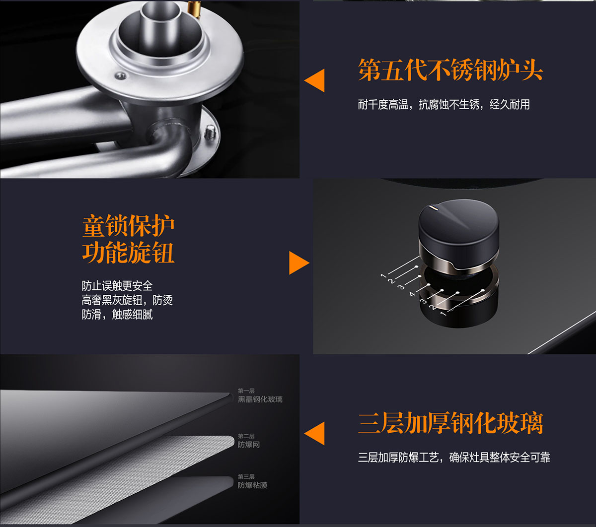 氣    源:天然氣+人工燃氣+液化氣材 質(zhì):防爆鋼化玻璃面板、一氣一電灶具、猛火直噴