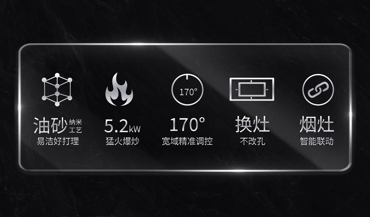 - 360°全維進風,立體補氧,5.2kW大火力盡享爆炒