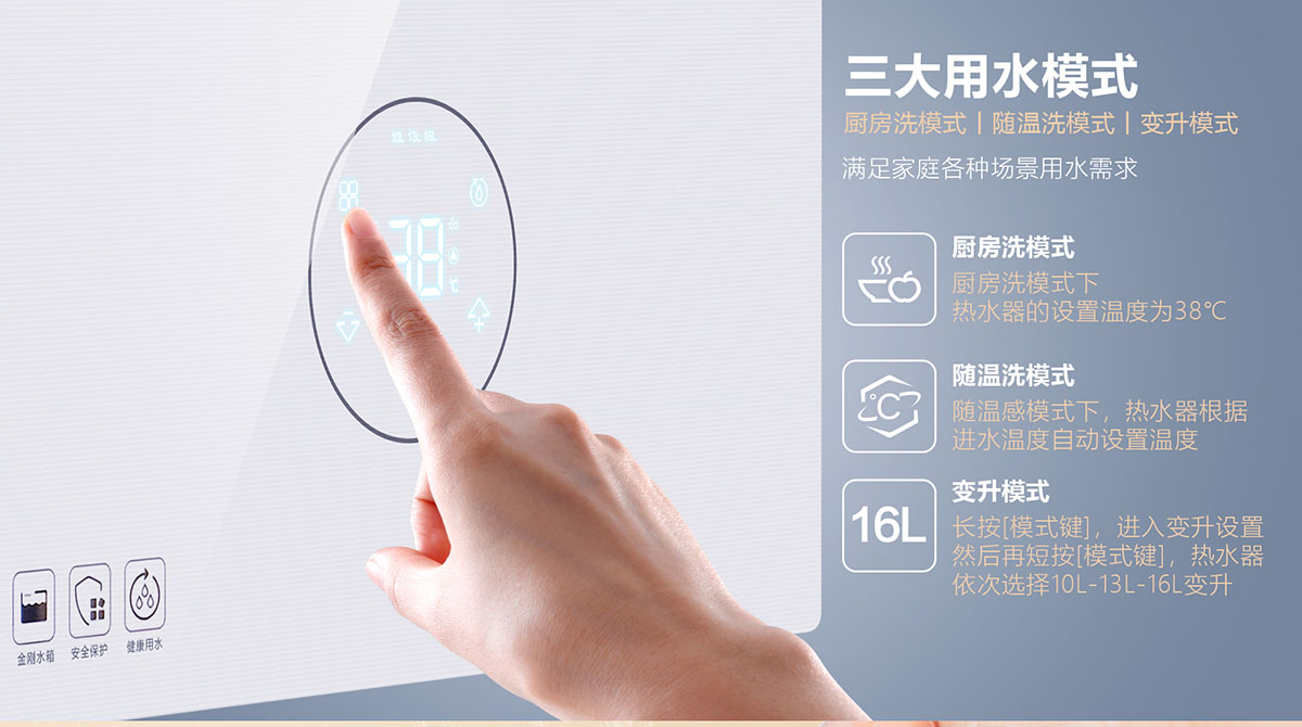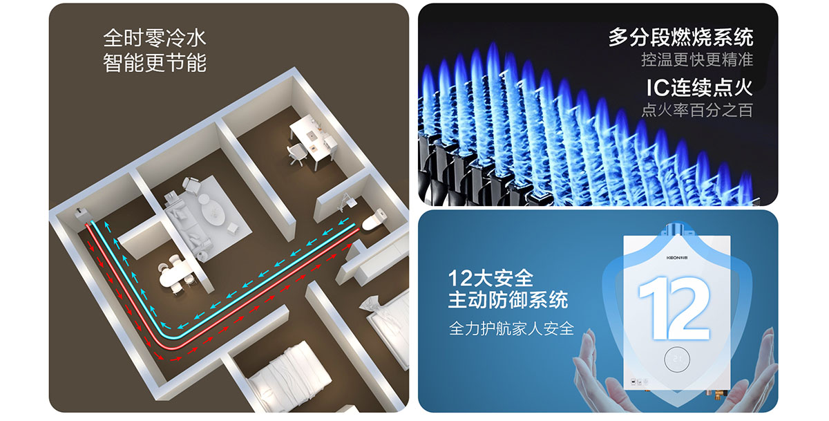 - 采⽤分段燃燒技術(shù),⽔溫調(diào)節(jié)范圍更廣,速度更快