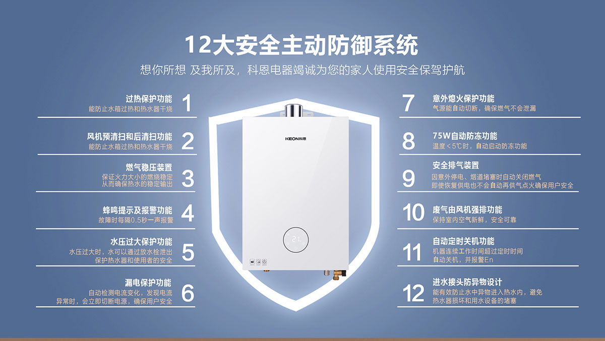 - 特設(shè)安全排⽓裝置,即使意外停電、煙道堵塞也能⾃動關(guān)閉燃⽓