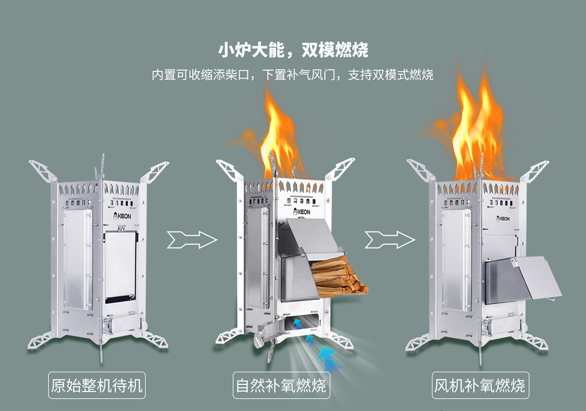 內(nèi)置可收縮添柴口,下置補(bǔ)氣風(fēng)門,支持雙模式燃燒