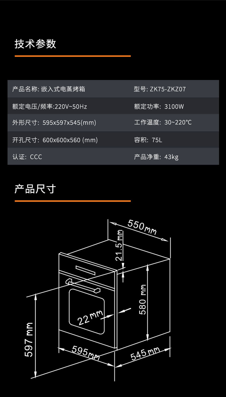 外形尺寸:595x597x545(mm)開孔尺寸:600x600x560 (mm)