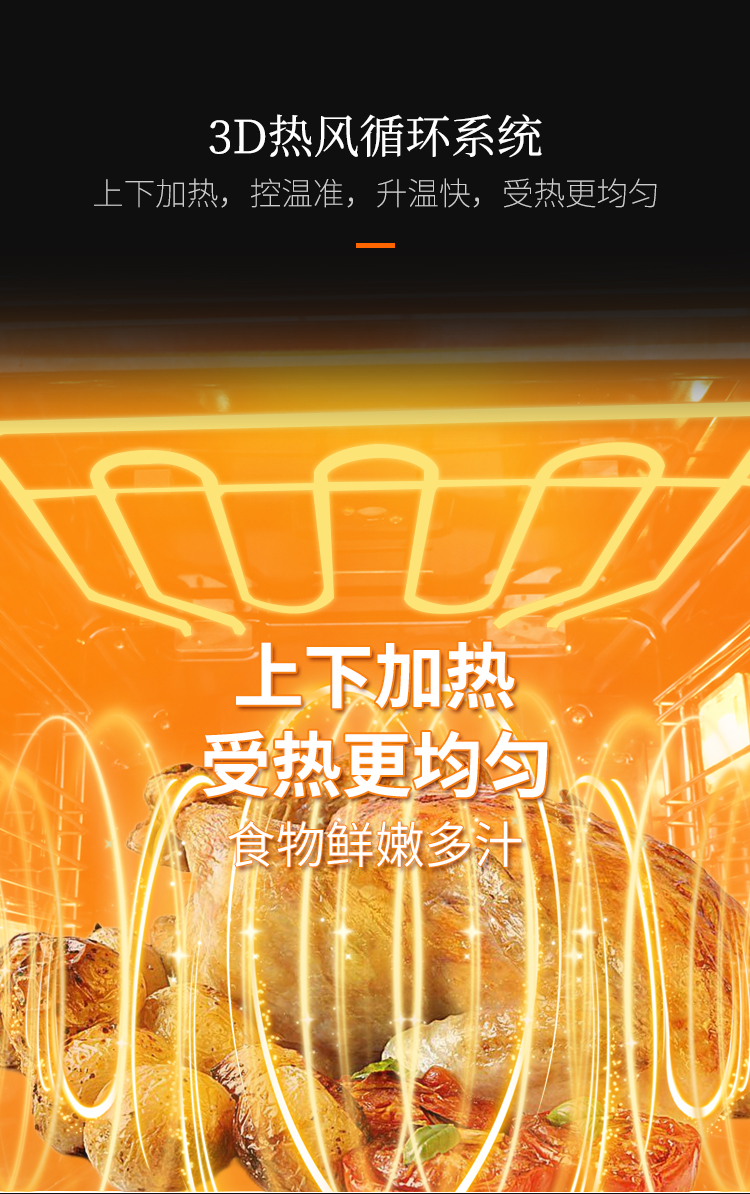 - 3D熱風(fēng)循環(huán)系統(tǒng),升溫快,受熱更均勻