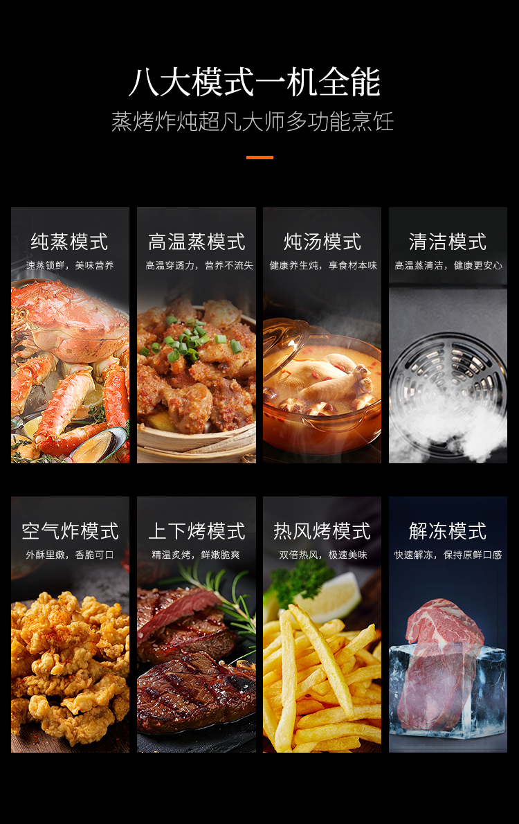 - 超凡蒸烤炸,八大模式一機全能