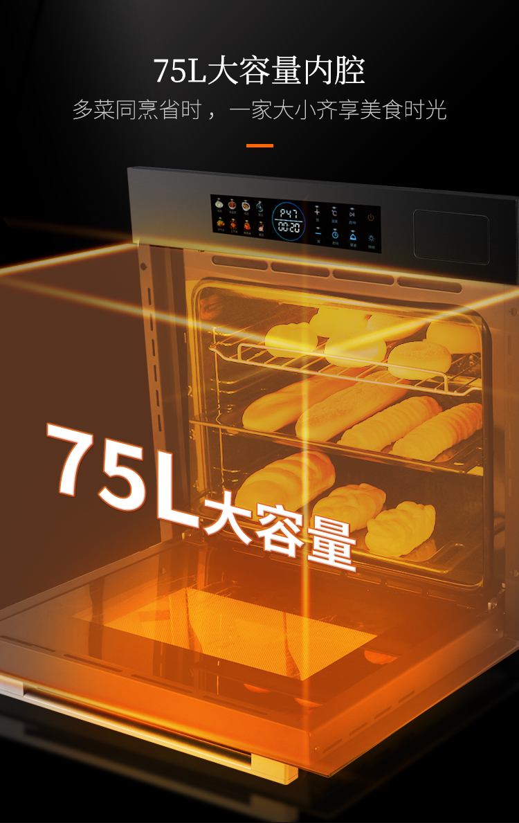 - 75L大容量,可滿足多菜同時烹飪